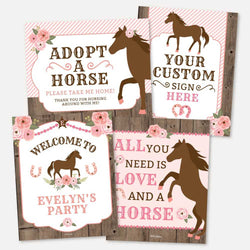 Pink Horse Kids Party Custom Sign Printable